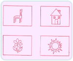 .Draw 20 to 30 simple pictures on index cards. (Circles, trees, house, cat, letters, boat, ladder, chair, bow, sun, rainbow, table, fork, hat, bear, etc.)