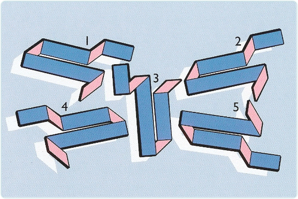 Visually Perceived Image: Ribbon Juniorsbook 17 years ago CLICK BELOW TO GET ANSWER The same ribbon is shown from different perspectives. Which ribbon 1-5 is unlike the others? Answer: Ribbon number 3 is wrong.