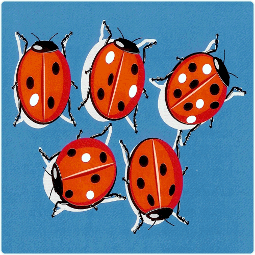 How many white dots should there be on the wings of the last ladybug?