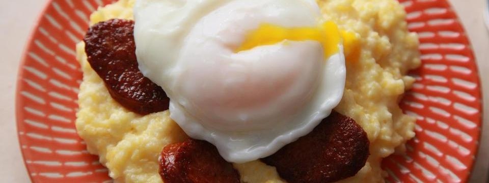 Grits is usually not eaten plain. A variety of additives — including butter, salt, sugar, cheese, and gravy — are popular. Grits is usually served for breakfast, along with side items like ham, sausage, or eggs. The dish originated in the Southern United States but now is available nationwide, and is popular as the dinner entrée shrimp and grits, served primarily in the Southern United States.