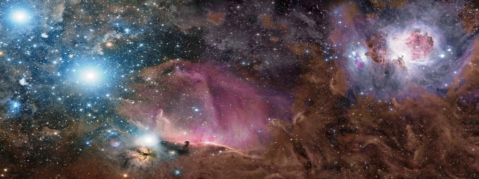 The whole constellation was named after Orion, the great hunter of ancient Greek mythology. When Orion was killed by the goddess Artemis, he was changed, according to the myth, into a group of stars. These took the form of a warrior wearing a girdle of three stars (Orion’s Belt) and a lion’s skin, and carrying a club, a sword and a shield. Below the belt a hazy line of stars representing the jewels on Orion’s sword can be seen.