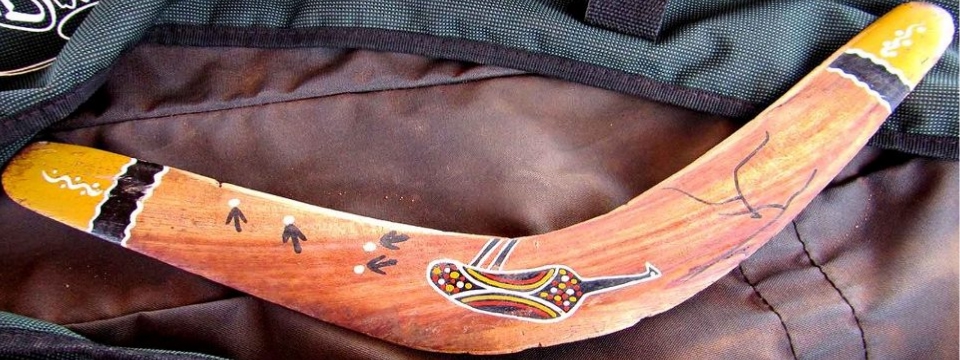 Fast Catch boomerangs usually have three or more symmetrical wings (seen from above), whereas a Long Distance boomerang is most often shaped similar to a question mark. Maximum Time Aloft boomerangs mostly have one wing considerably longer than the other. This feature, along with carefully executed bends and twists in the wings help to set up an ‘auto-rotation’ effect to maximize the boomerang’s hover-time in descending from the highest point in its flight.