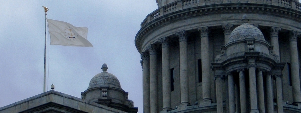 Rhode Island is on the eastern coast of the United States and is officially known as the “State of Rhode Island and Providence Plantations”. The flag of Rhode Island is a white rectangle in the proportions 29:33. A gold anchor representing hope and the maritime history of the state is at the center of the flag. A blue ribbon with the word “HOPE” in gold letters is depicted below the anchor. The anchor and ribbon are surrounded by 13 gold stars representing the 13 colonies in North America that rebelled against British rule in 1775.
