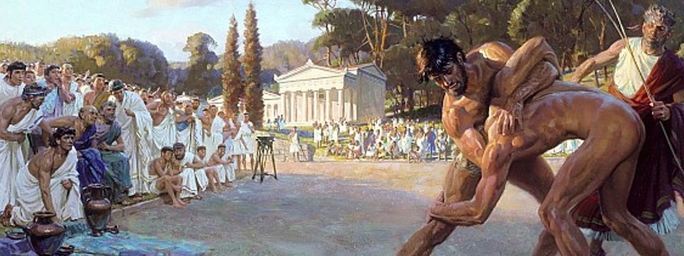 Originally a religious festival held in honor of the Olympian Zeus, the competitors took an oath of honesty and fairness in front of the god’s statue. The athletes took part in a program of foot racing, boxing, pancratium (all-in-wrestling), chariot racing and pentathlon (five events of long jumping, running, javelin and discus throwing, and wrestling).