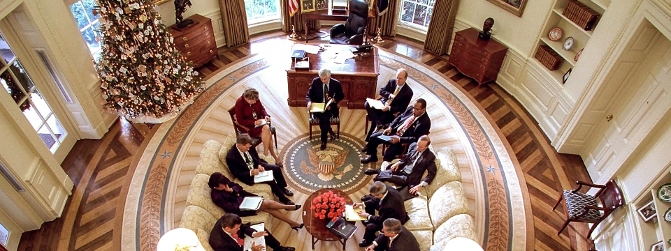 Wyeth based the design of the new office for the president on the oval-shaped Blue Room. Eventually it became known as the Oval Office. Today, it remains a powerful symbol of the American Presidency, since it’s often used for meetings with world leaders and televised addresses to the American public.